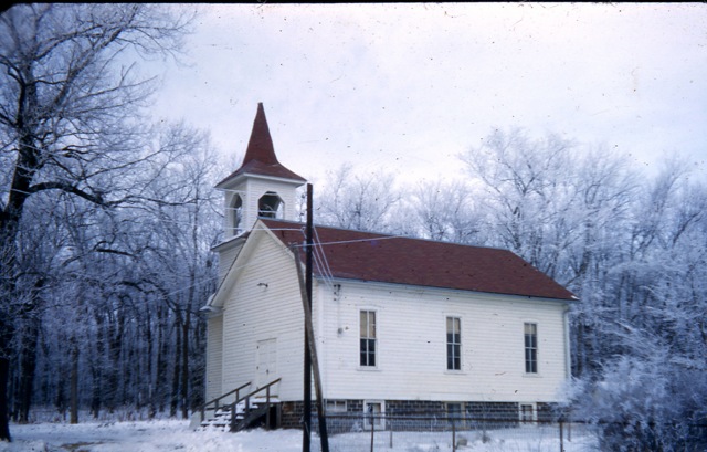When the men came back from service in the Second World War the time seemed right to at last put a basement under the church. The work was finished in the spring of 1948 at a cost of just over $8,000. After the dedication ceremony the Church made the new facility available to community groups for meetings including 4-H, Farm Bureau, Township Board meetings, elections, suppers and socials. These ‘events, as many as 155 in a single year, attracted large crowds. In 1947 the parking lot was expanded and graveled to eliminate the problems of springtime mud. The last addition to the building was made in 1954 when a new entryway was added giving the Church its present appearance. In 1956, when the Catholic Church in Fairmont was taken down, the stained glass windows salvaged and cut down to fit in the sanctuary. Later, in 1962, when the United Church of Mapleton was taken down, the trustees purchased the pews for $200 and cut them down to accommodate a center isle.